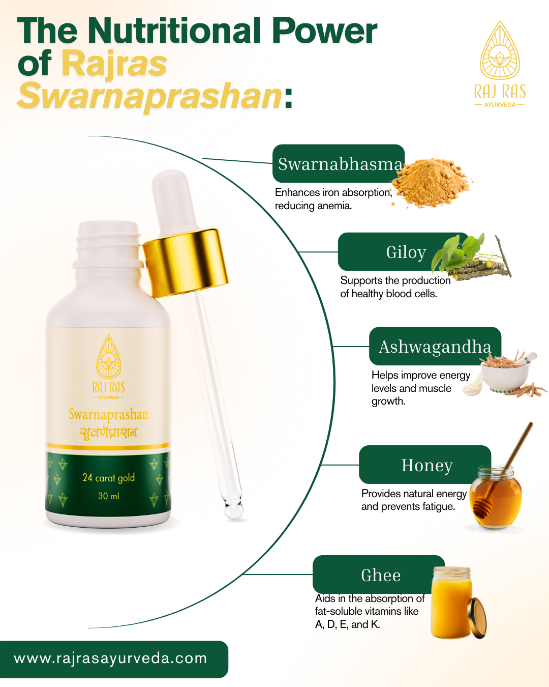 Raj Ras Swarnaprashan for Kids 30ml, Formulated with Pure 24CT Gold – Healthy Growth Golden Nectar For Kids – Boosts Kids Intellect, Improves Gut Health & Immunity Booster for Kids (1-16 Years)